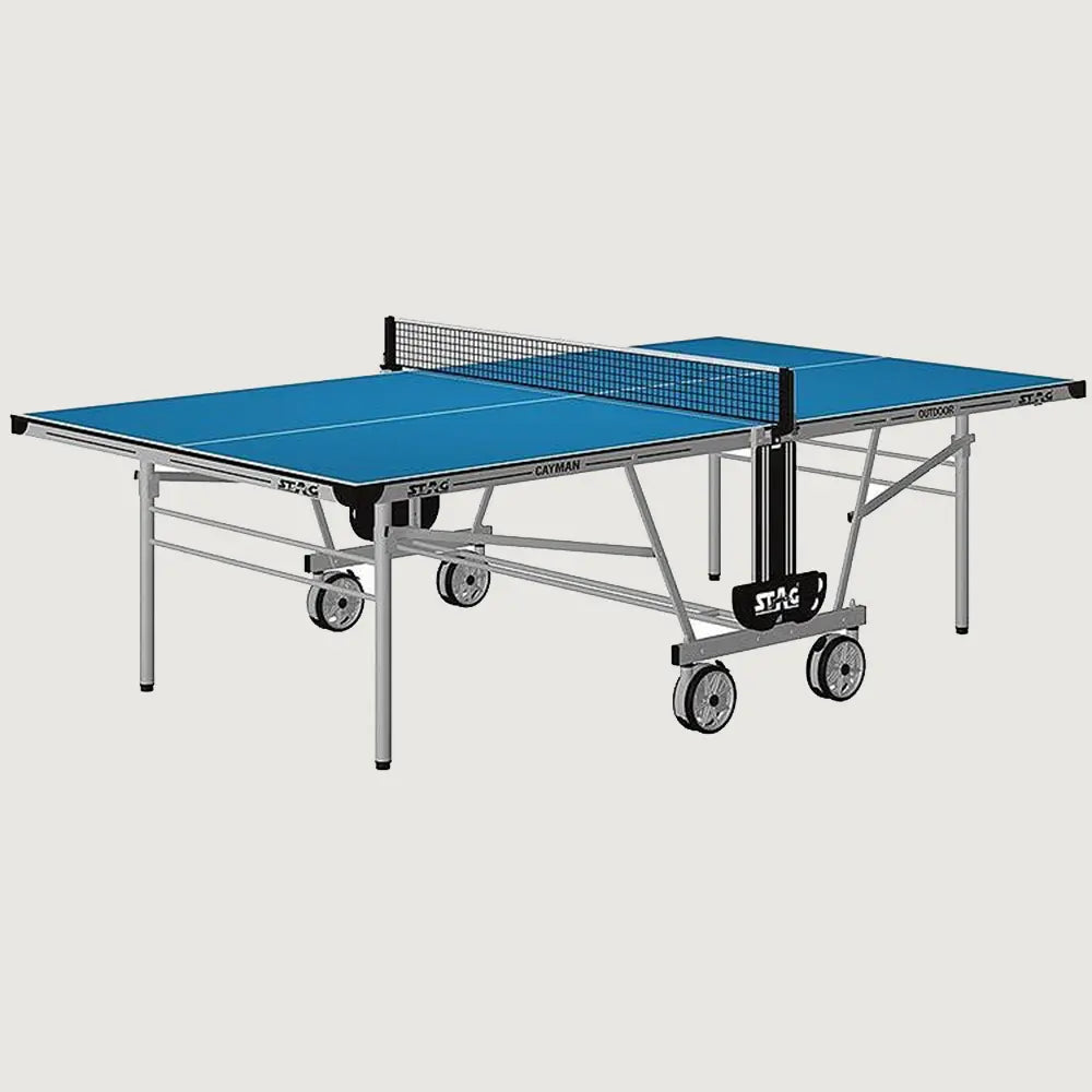 The STAG Cayman Outdoor Table Tennis Table is built with superior craftsmanship and a fully weatherproof design, making it ideal for both residential and commercial use. Featuring a professional-grade PRO-TEC5 outdoor tabletop with an anti-glare DuPont® clear coat, it ensures consistent ball bounce and improved playability for high-performance games in any environment. Its sturdy frame, strong legs, and premium locking wheels provide stability and durability, while the easy single-handle locking mechanism and built-in corner protectors enhance safety and convenience. The Cayman Outdoor is simple to assemble with a detailed manual and BILT 3D video instructions for a quick and hassle-free setup. Perfect for players looking to sharpen their skills both indoors and outdoors.