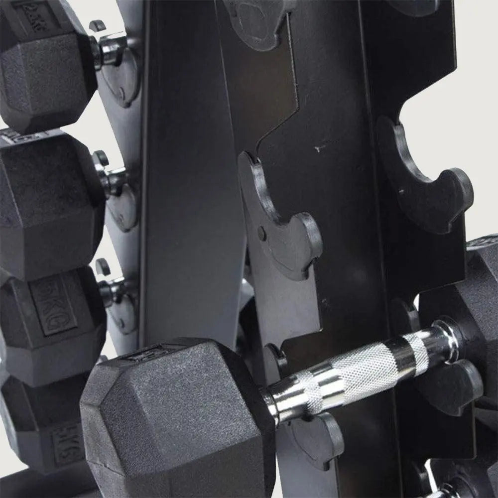 The GRIT Hex Dumbbell Set (1 kg – 10 kg) with Vertical Dumbbell Rack delivers versatile strength training for all fitness levels at home or in the gym. This complete set includes 10 pairs of hex dumbbells ranging from 1 kg to 10 kg and a sturdy vertical rack for organized, convenient storage. Designed with user-friendly features like adjustable height and width, ABS plastic card slots, and non-slip footpads, this set ensures safe, efficient workouts for adults, children, and seniors alike. Perfect for building strength, toning muscles, or maintaining overall fitness, the GRIT Hex Dumbbell Set combines durability, safety, and practicality in one package.