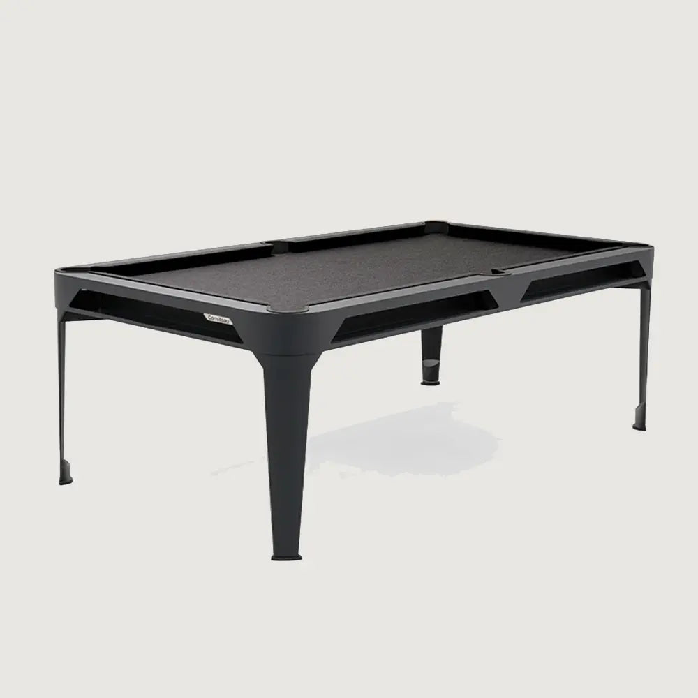 The Cornilleau Hyphen Indoor & Outdoor Pool Table redefines luxury leisure with its seamless blend of elegance, performance, and durability. Crafted with a 12 mm resin laminate slate and a powder-coated aluminum frame, this table delivers tournament-grade play while withstanding outdoor conditions such as sun, rain, and humidity. Available in Black or White frame finishes with dark grey cloth, its minimalist design complements modern living spaces and high-end outdoor settings. Designed with versatility in mind, the Hyphen easily transforms into a dining table with optional tabletops, making it as practical as it is stylish. Complete with all essential accessories, it’s ready for play right out of the box—perfect for both casual gatherings and competitive matches.
