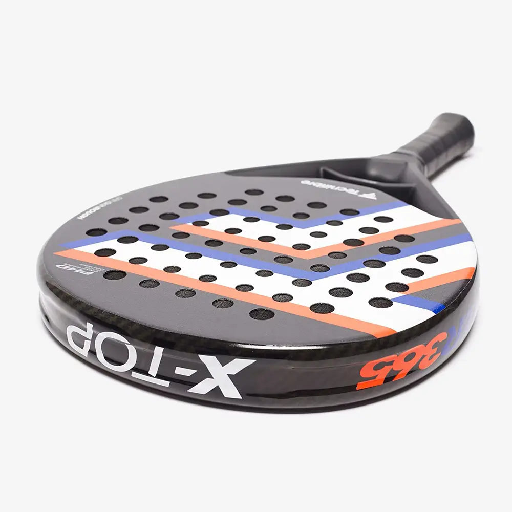 Equipped with Tecnifibre’s signature Spin Skin Rough surface, the Wall Master 365 enhances spin potential, giving you the edge to destabilize your opponents. The PHD drilling pattern with triple-diameter holes improves tolerance on off-center hits, while the X-TOP technology reinforces durability with aramid fibers and PTFE treatment, protecting the racket from wear and abrasion.